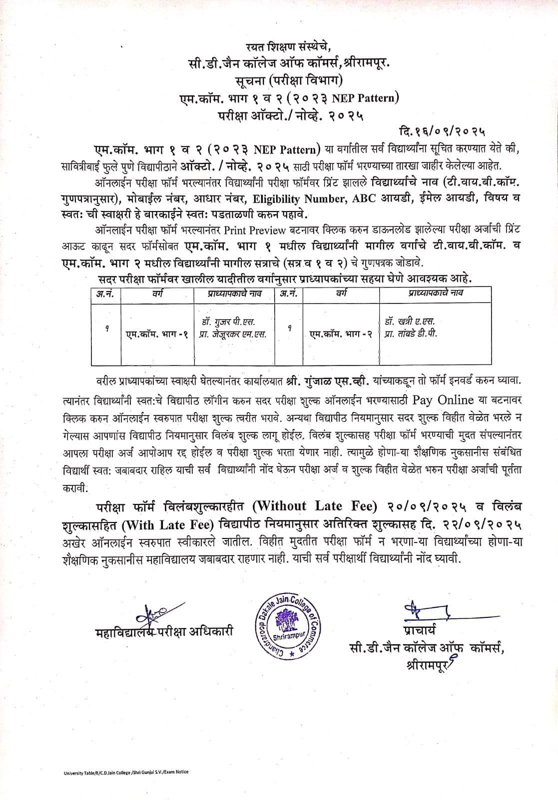 MCom Exam Notice NEP..>